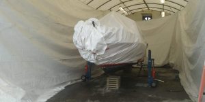 Small boat blasting in the shop